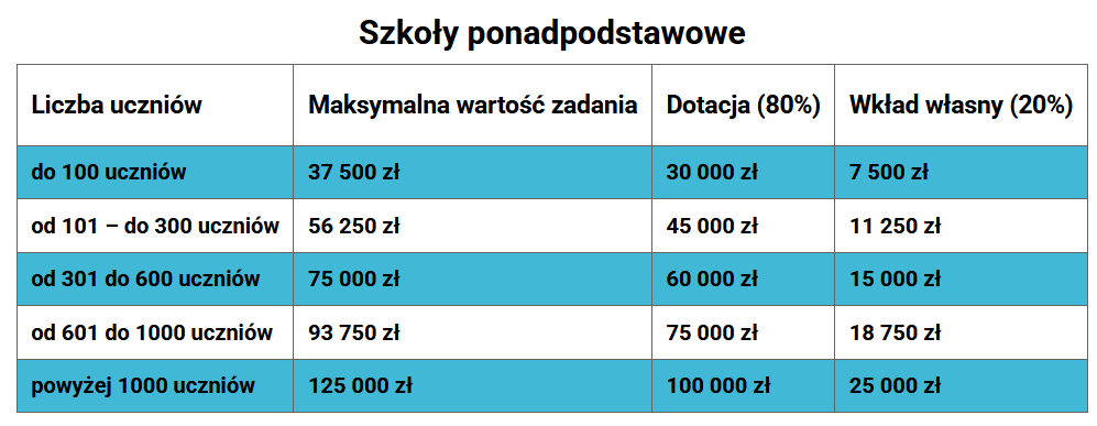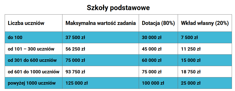 Każdy organ prowadzący musi zapewnić wkład własny w wysokości 20% wartości projektu.