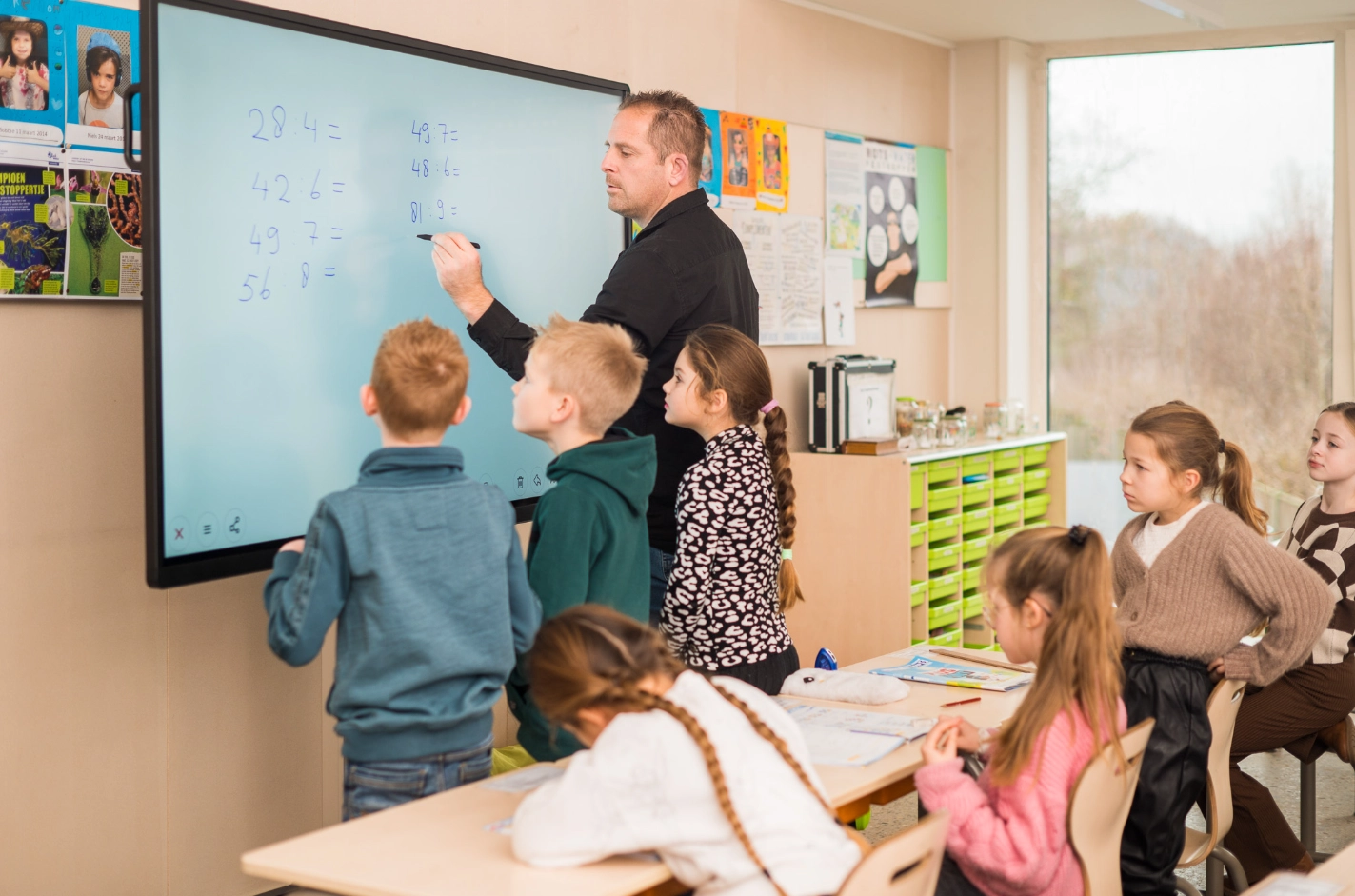 Dotyk V‑SENSE – 50 punktów, multitouch bez kompromisów - Technologia umożliwia pisanie kilku uczniom jednocześnie, co sprawdza się w pracy grupowej i kreatywnych zajęciach. Naturalne gesty – rysik do zapisu, dłoń do sterowania – działają płynnie i precyzyjnie. Tu nie ma miejsca na frustrację – ekran jest jak papier.