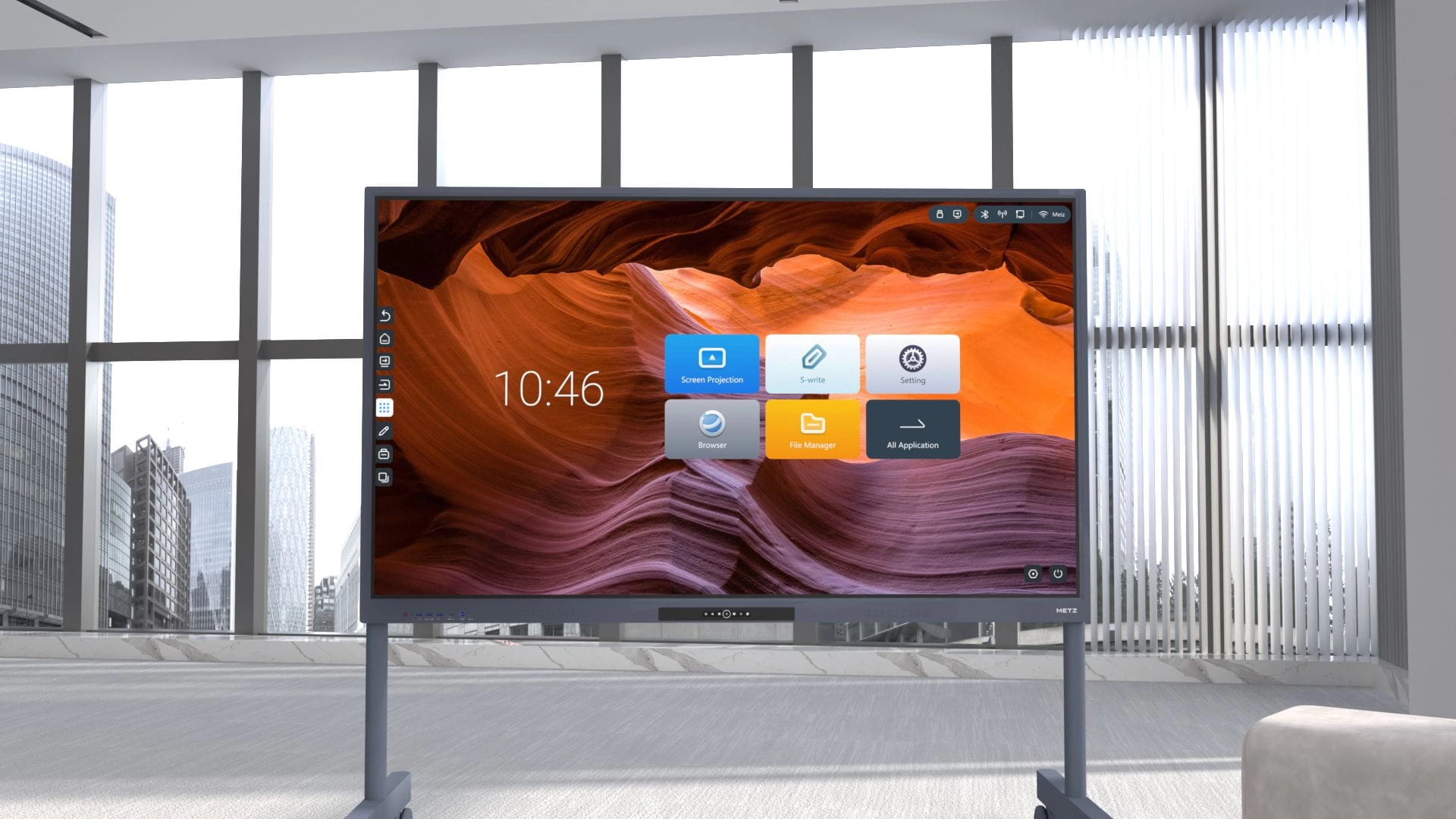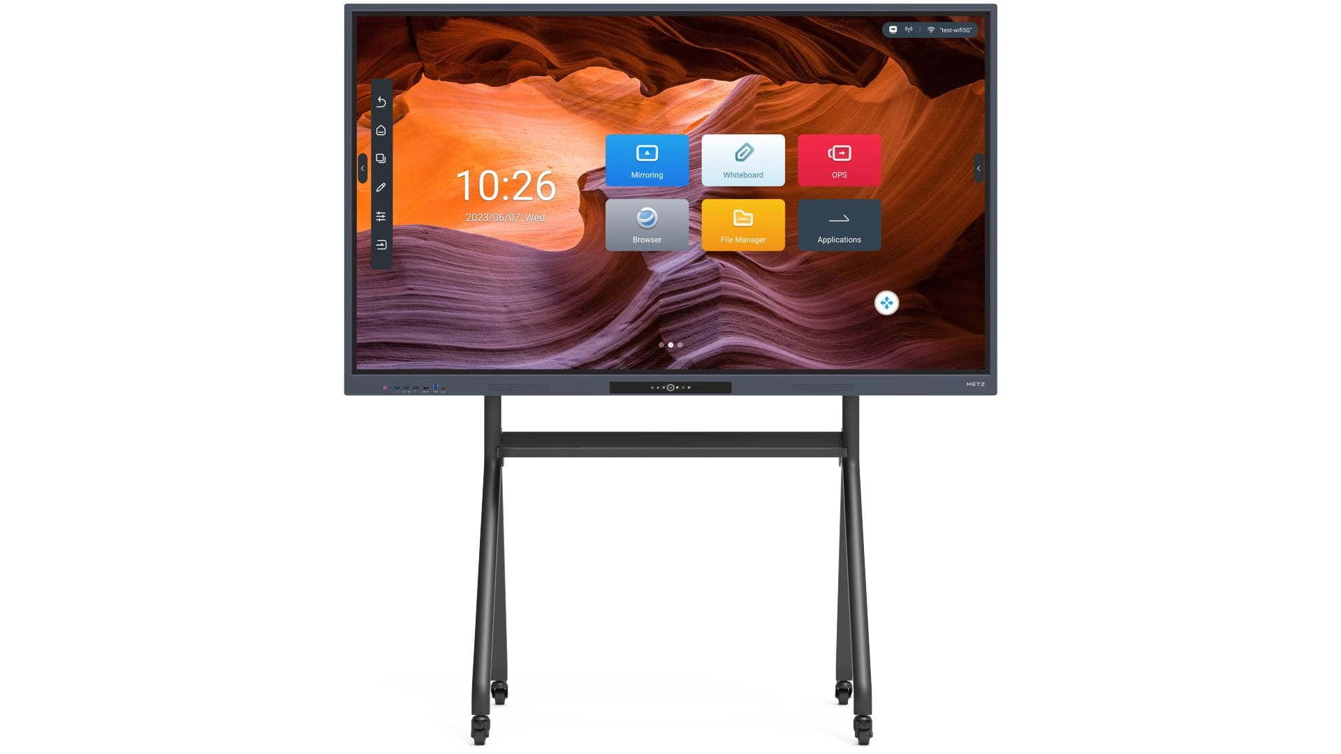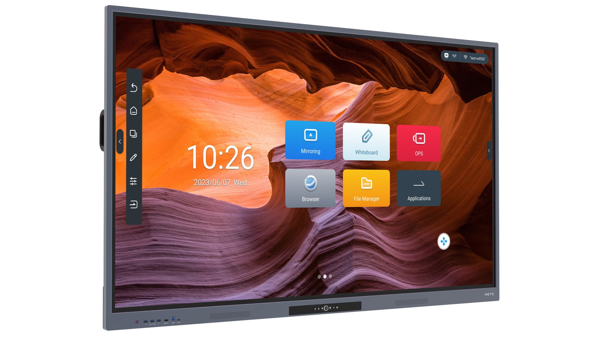 Fizyczne klawisze skrótów dla lepszej ergonomii używania i szybkości przełączania między aplikacjami. Monitory interaktywne METZ wyposażone są w dodatkowe, fizyczne guziki umieszczone wygodnie na przednim panelu, aby zagwarantować Ci maksymalny komfort i szybkość pracy z ekranem.
