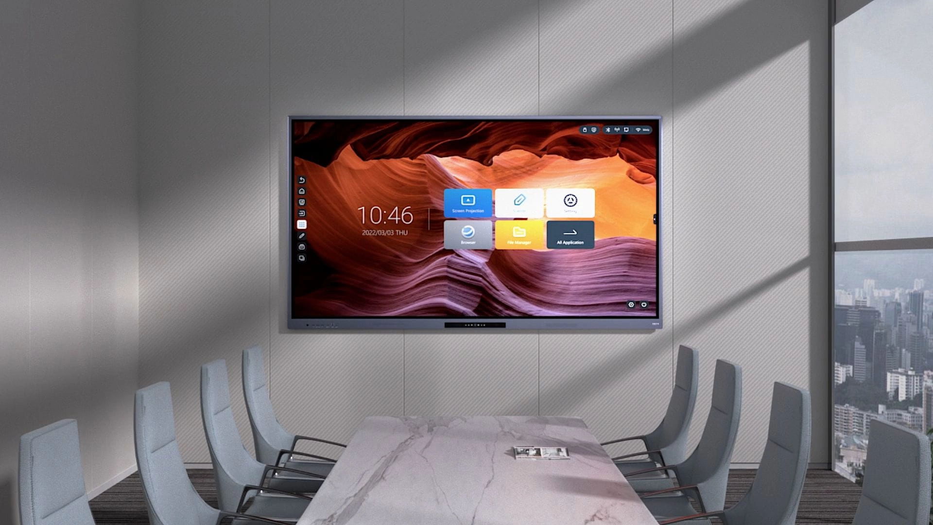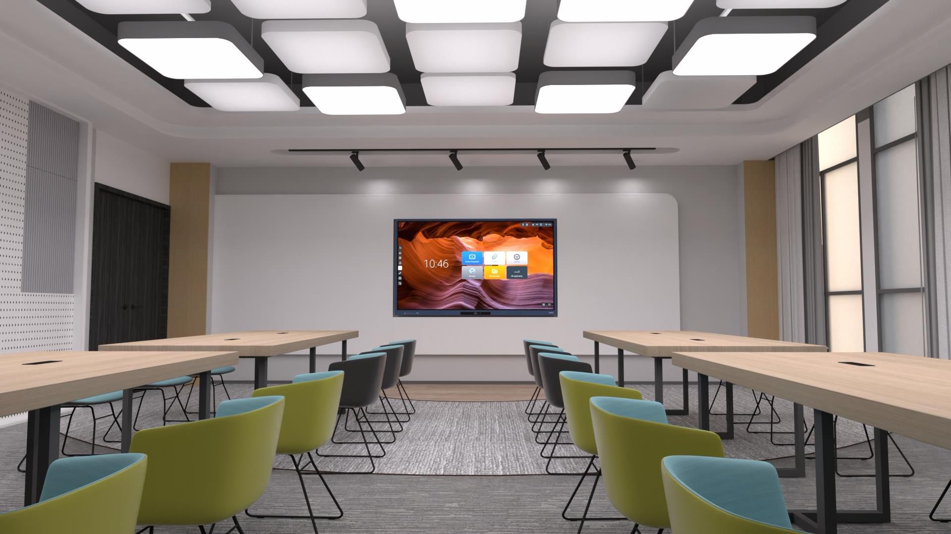 - Oprogramowanie Android: WPS Office, ScreenShare, Tablica, Chrome, Menedżer plików, Strona powitalna, Blokada aplikacji, Kalendarz, Kalkulator, Narzędzia