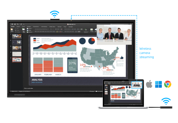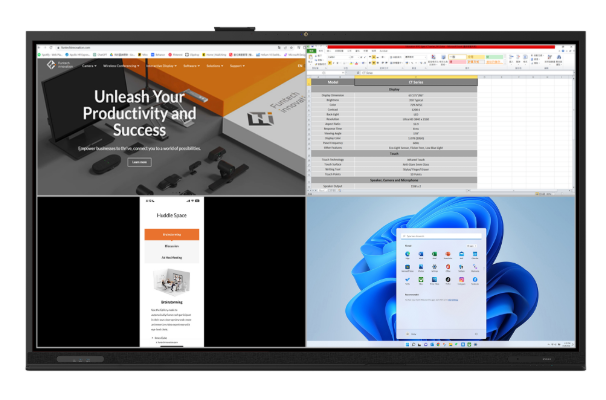 Seria CT umożliwia połączenie i wyświetlanie do czterech urządzeń jednocześnie. W tym laptopów, tabletów i smartfonów, a to wszystko na podzielonym ekranie, co pozwala członkom zespołu na efektywną współpracę i kreatywną burzę mózgów.