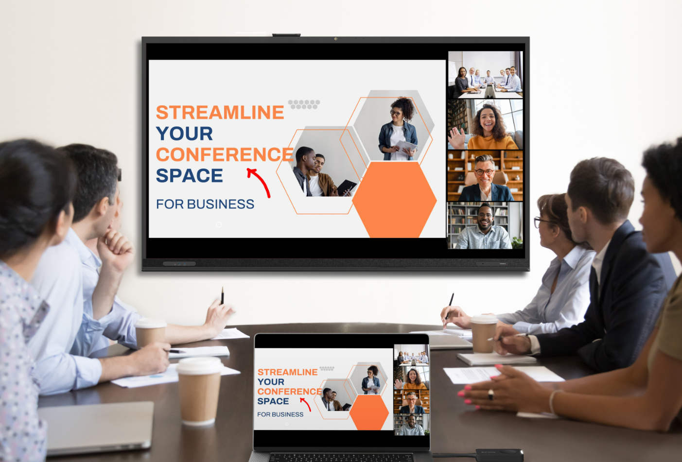 - All-in-One: ekran dotykowy, kamera 4K, 8 mikrofonów