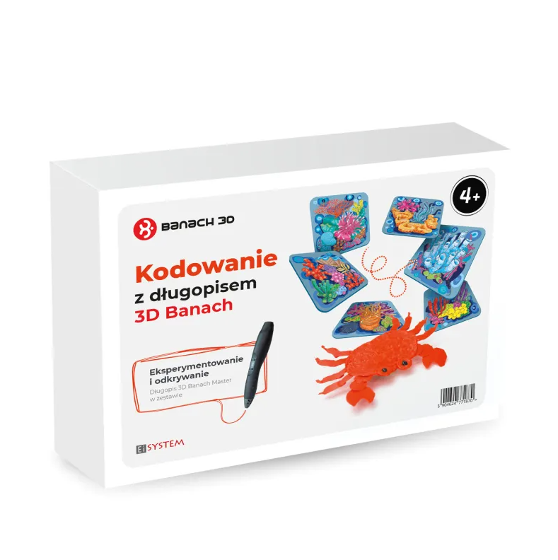 Pan Krab poprowadzi nas przez osiem zabaw rozwijających umiejętności niezbędne do logicznego myślenia. Pan Krab rusza się… jak krab – nie obraca się ale może chodzić w czterech kierunkach. Krab ma też przyjaciół, którzy lubią mu przeszkadzać. Na kamienistej plaży spotkamy panią Żabkę, panią Agamę, pana Kruka a w morskiej rafie koralowej pana Ślimaka, panią Murenę, panią Meduzę i panią Ośmiornicę – każde ze zwierząt ma nieco inny sposób ruszania się. Na szczęście nie musimy ich pamiętać, bo są zaznaczone kropkami.