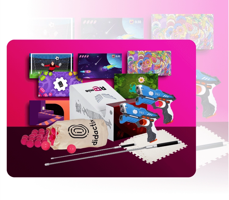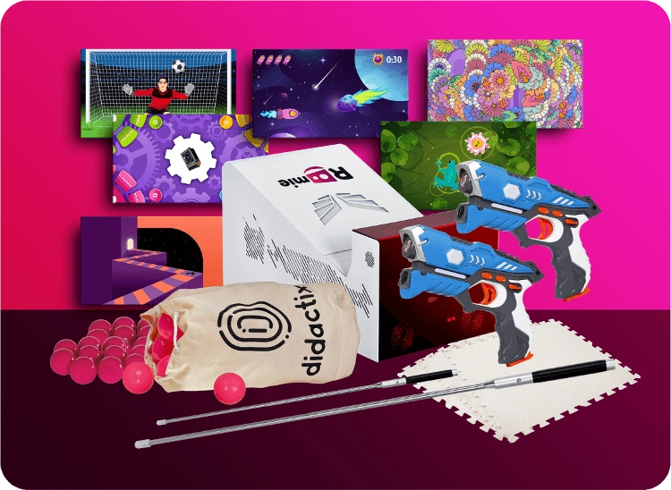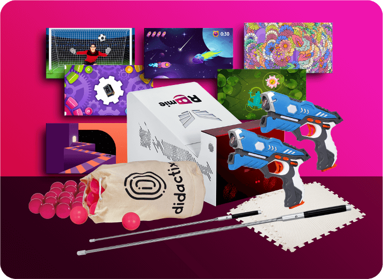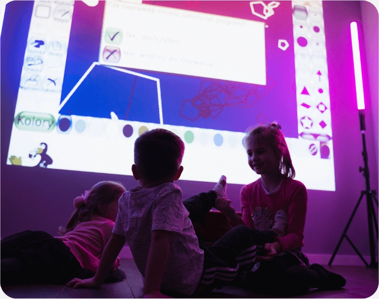 - Rodzaj interakcji: Ruch, gest, pisak interaktywny, piłeczki, pistolet laserowy